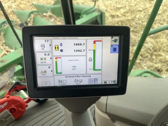 JD S670 Combine Combine Type: Corn/Bean, Axle: PRWD, Duals/Singles: Floaters, Chopper/Spreader: Chopper, Options: Yield Monitor, Options: Contour Master (Lateral Tilt Feederhouse), Header: No, Premium Cab, Enhanced Air Suspension Seat, HID Lighting Package and Header Extremity Lights, Basic Radio Package, AutoTrac Ready with Harvest Monitor, Touchscreen GS3 CommandCenter 7 In. Color Display, ProDrive Transmission with Harvest Smart Feedrate Control, Powered Rear Axle, 2-Speed 4-Wheel Drive , 110kW Heavy Duty Tilt Cylinder, High Torque, Variable Speed Drive System - 3.15 In. (80 mm) Lift Cylinders, Round Bar Concave, S-Series Cleaning Shoe General Purpose Dual Adjust Chaffer and Sieve with TouchSet, TriStream Rotor Configuration Extended Wear (Densepack Ready), 26 Ft. (7.9M) Unloading Auger, Manual Adjust Vane Tailboard, 28LR26 (Goodyear Only) or 750/65R26 (Firestone or Michelin), 650/85R38 R1W Duals 173A8 (Firestone, Goodyear, or Michelin), Final Tier 4 Certified Engine, Clean Grain Auger and Fan Bottom Protection Shielding, Engine Coolant Heater - 110 Volt (Not available for Export), Additional Threshing Concave Insert Bars for Round Bar Concaves (Set of 2), SideHill Performance Package, Additional "Full" Grain Tank Sensor, Firestone Brand Preferred