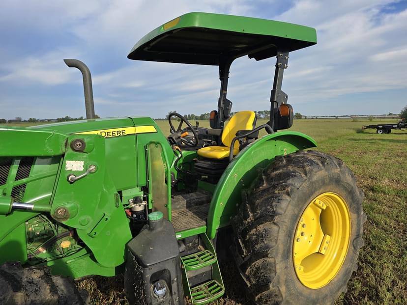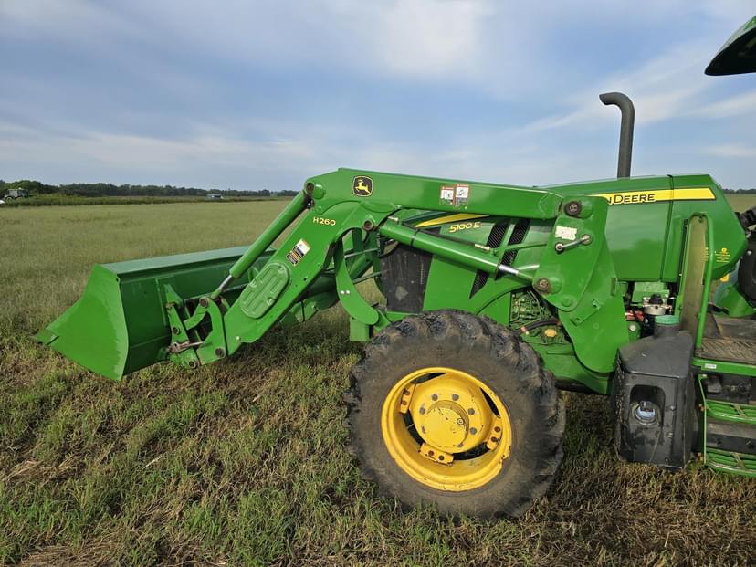 2016 JOHN DEERE 5100E 2016 John Deere 5100E tractor. 2869 hours. 24F/12R speed with left hand reverser. John Deere H260 loader with quick attach bucket and joystick control with 3rd function hydraulics. 2 sets hydraulic remotes. 540 PTO. MFWD. Canopy. Starts, runs, and operates.