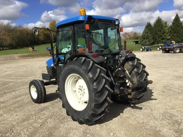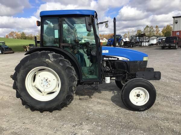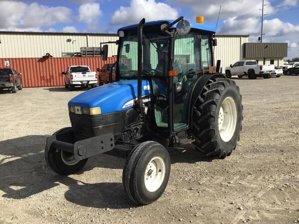 2003 New Holland TN75D 2WD with Cab/Heat/Air. 3520 hours. Operates well. 75 engine HP producing 62 PTO HP with a 16 speed mechanical shuttle transmission. 16 forward gears and 16 reverse. 3 point hitch, 540 rear PTO & 1 rear hydraulic remote. 16.9R30 rear tires & 9.5-15SL front tires.